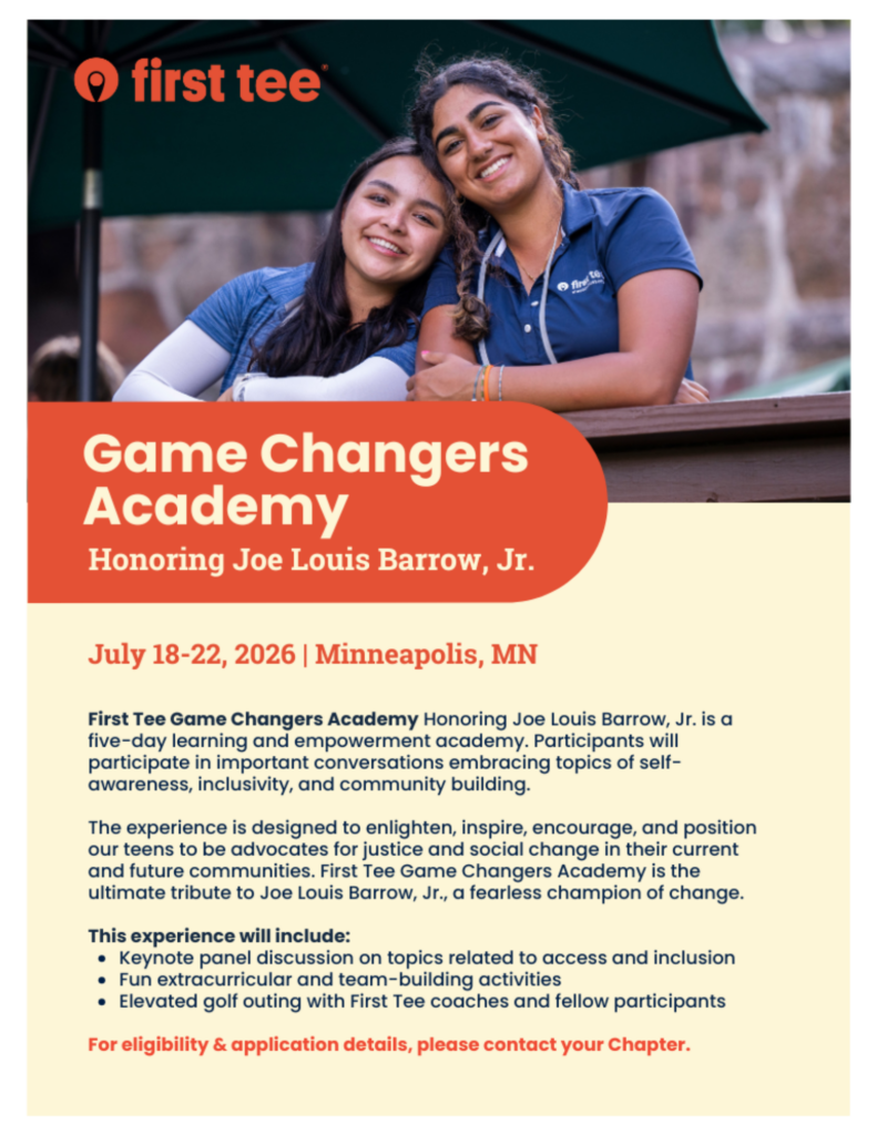 Throughout the academy, teens take part in dynamic, interactive workshops led by First Tee partners and nationally trained First Tee coaches, complemented by guided reflection activities that deepen learning and personal growth. Designed to enlighten, inspire, and empower, the experience prepares teens to become true Game Changers in their communities — now and in the future. The academy proudly honors former First Tee CEO Joe Louis Barrow, Jr., a fearless champion for opportunity, access, and inclusion and a passionate advocate for empowering the next generation.